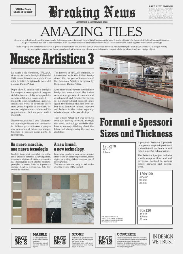 Il progetto Artistica 3 prevede una gamma ampia di pavimenti e rivestimenti declinata in vari colori, la soluzione perfetta per valorizzare le pareti e pavimenti degli ambienti contemporanei, sia pubblici che privati.